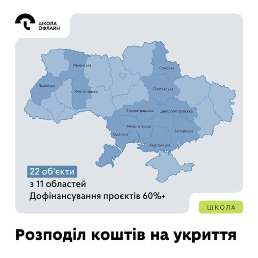 Фінансування отримають укриття, будівництво яких розпочали у 2023–2025 роках і які вже готові на понад 60%. Це дасть змогу громадам завершити проєкти та якомога швидше повернути дітей до очного навчання.