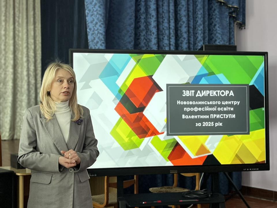 Сьогодні, 18 лютого 2026 року начальниця управління освіти і науки Волинської облдержадміністрації Наталія Матвіюк завітала на щорічний звіт директора Комунального закладу професійної освіти «Нововолинський центр професійної освіти» Валентини Приступи за 2025 рік.