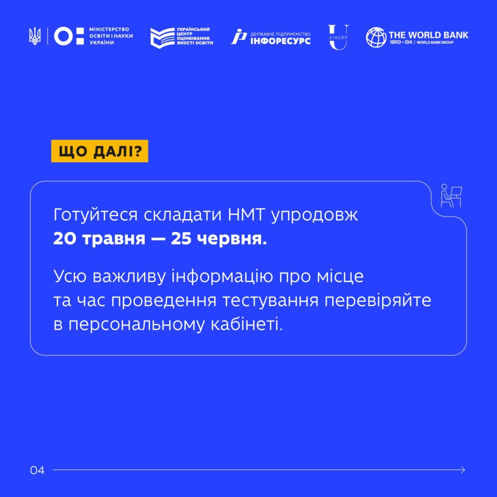 Стежте за новинами вступної кампанії за хештегом #НМТ2026, а також на сайті Український центр оцінювання якості освіти.
