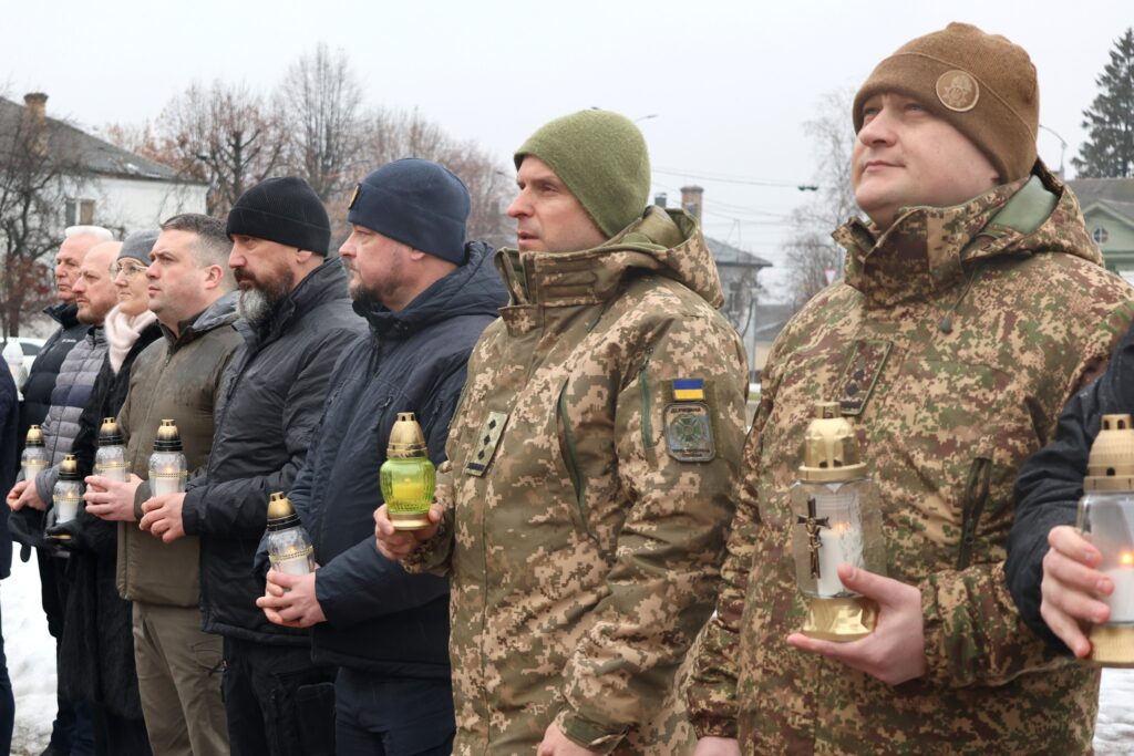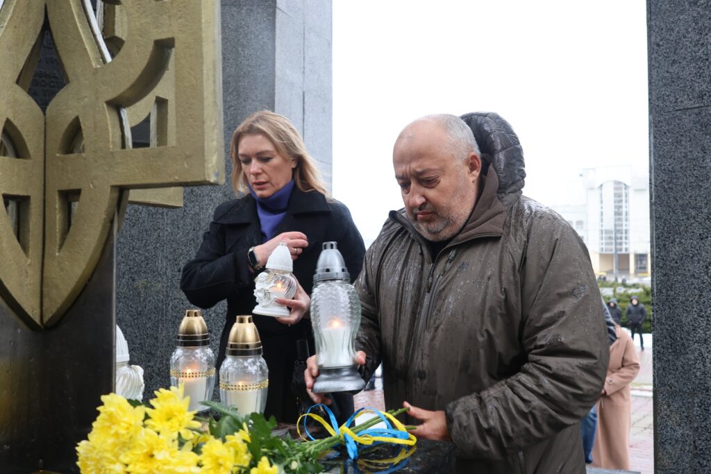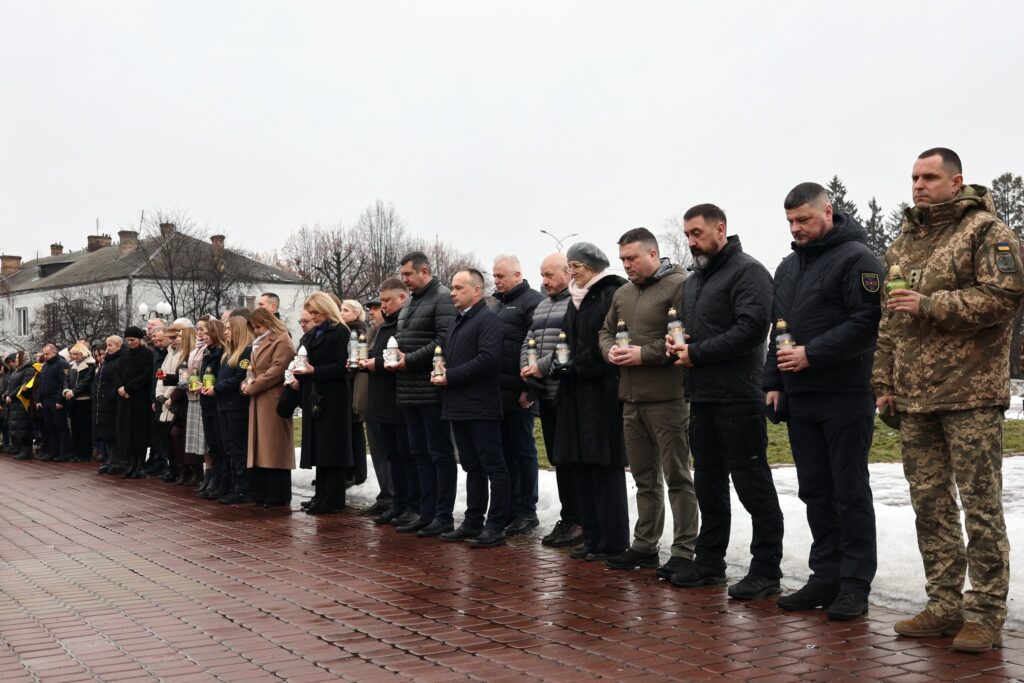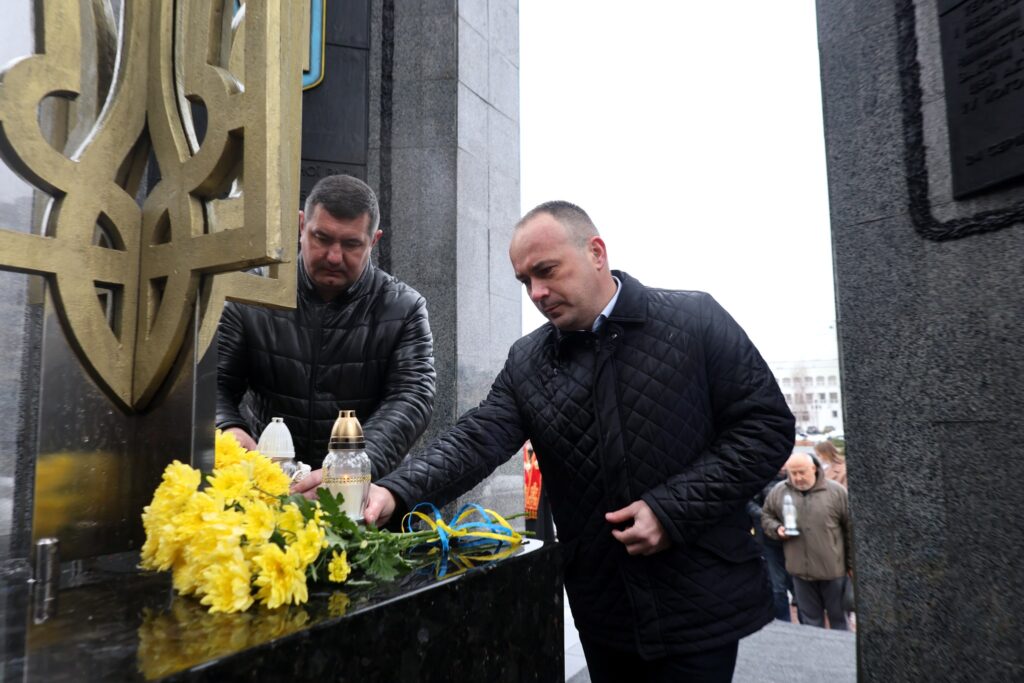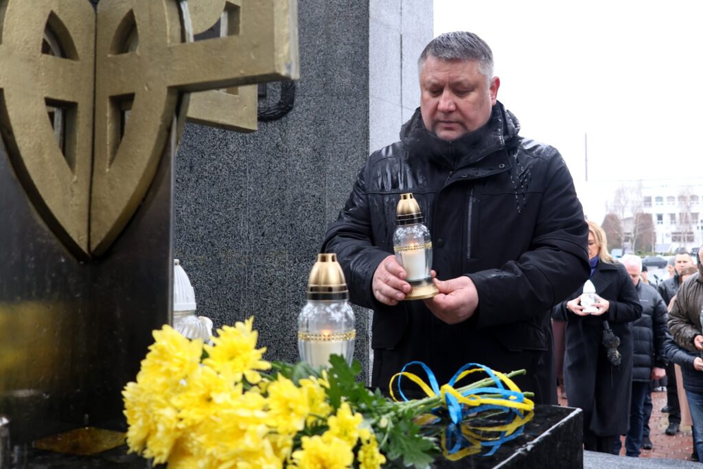 Після молитви учасники заходу поклали квіти та лампадки до пам’ятника «Борцям за волю і незалежність України». Водночас покладання квітів відбулось до пам’ятного фотостенду «Герої Нескореної України», вшановуючи подвиг усіх, хто поклав життя за свободу і незалежність держави.