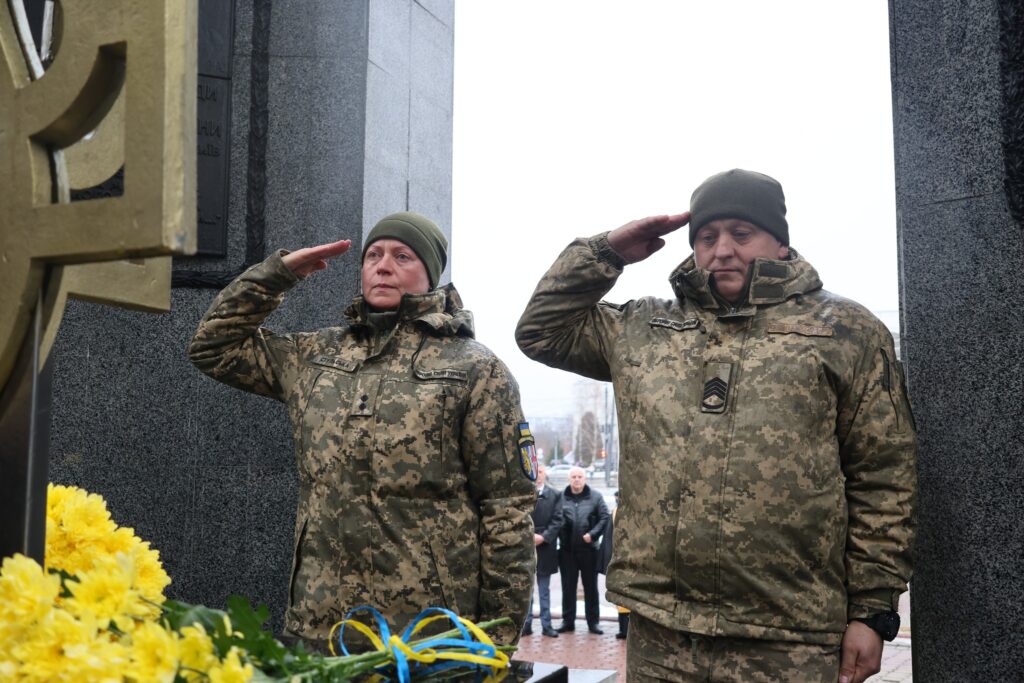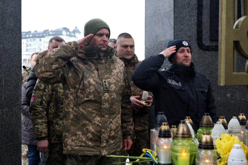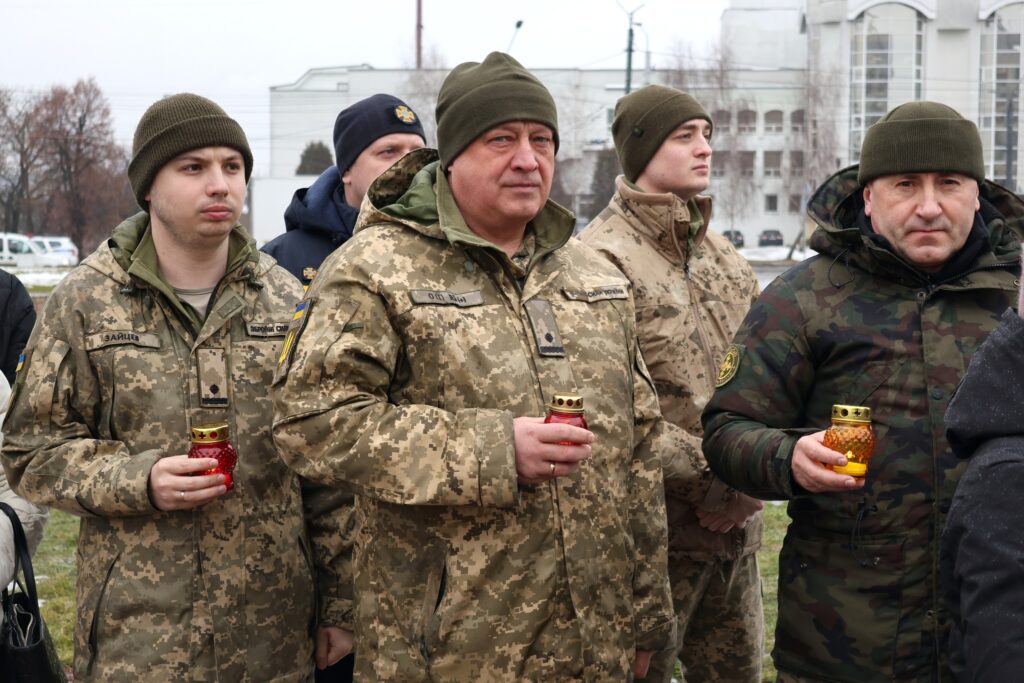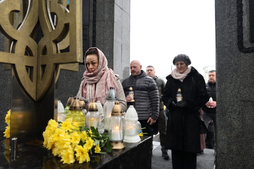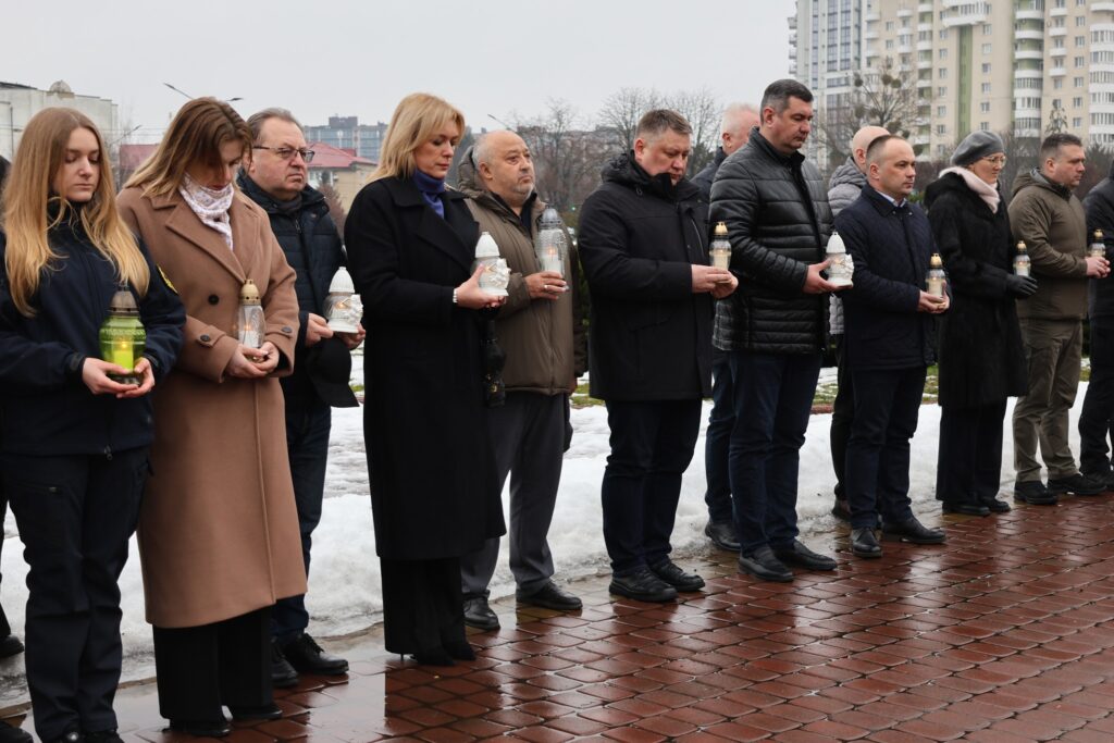 Після молитви учасники заходу поклали квіти та лампадки до пам’ятника «Борцям за волю і незалежність України». Водночас покладання квітів відбулось до пам’ятного фотостенду «Герої Нескореної України», вшановуючи подвиг усіх, хто поклав життя за свободу і незалежність держави.
