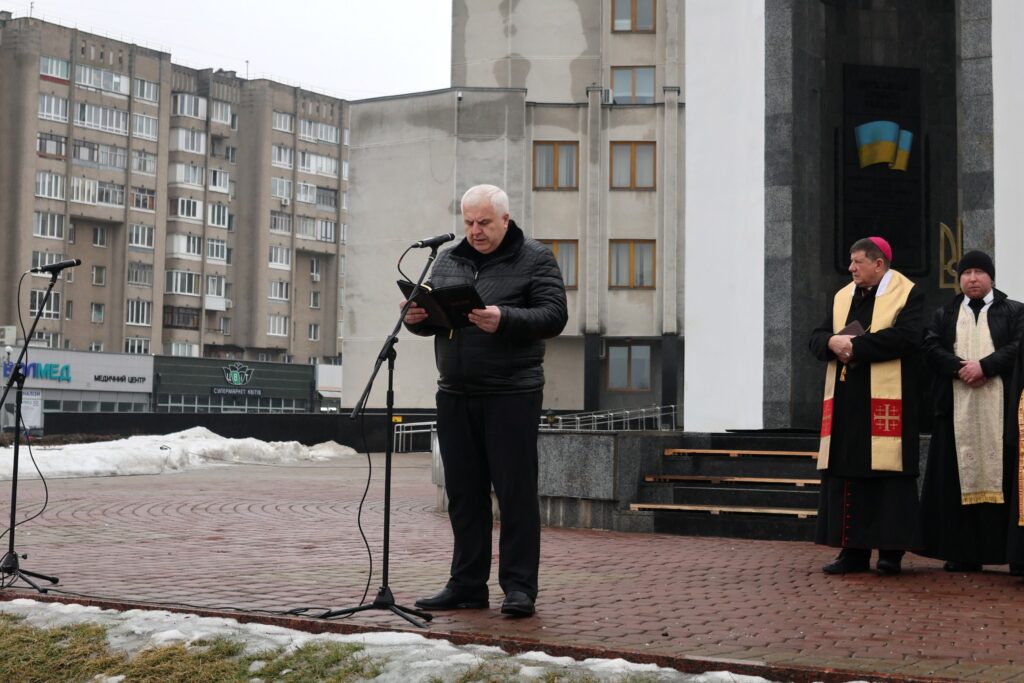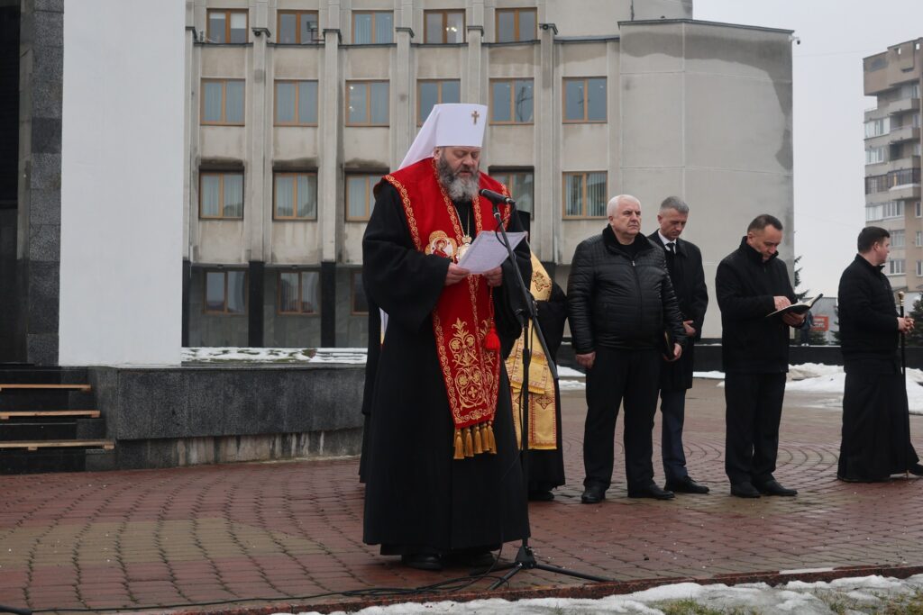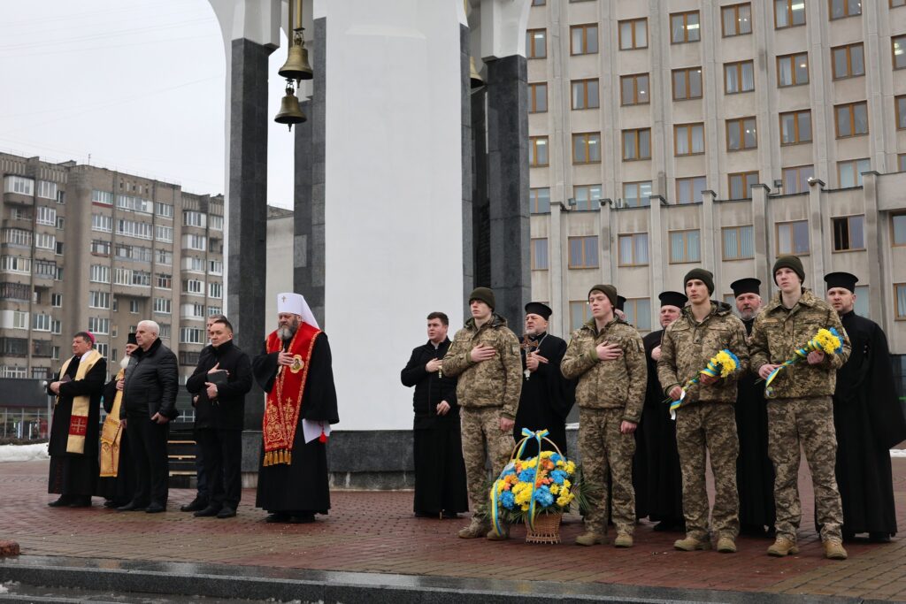 Біля пам’ятника «Борцям за волю і незалежність України» зібрались волиняни, священнослужителі, військовослужбовці, керівництво області та міста.