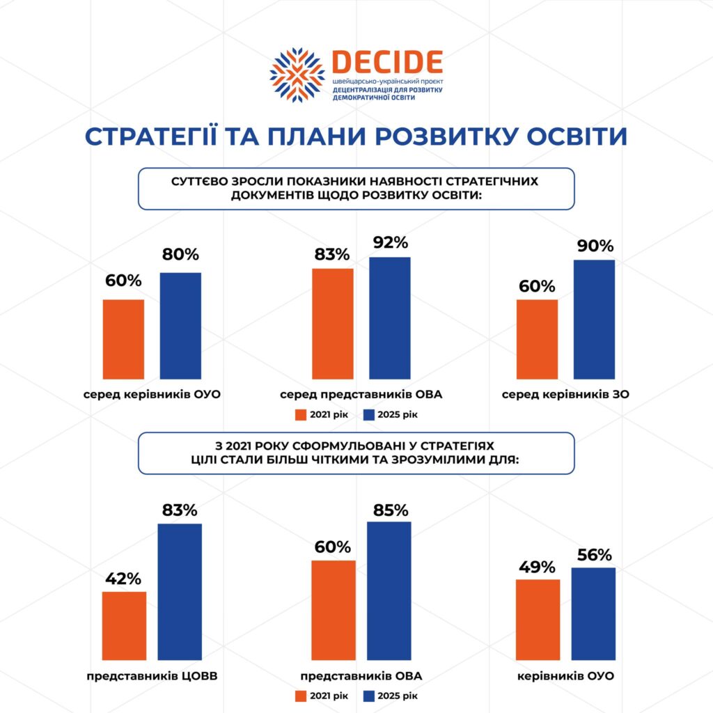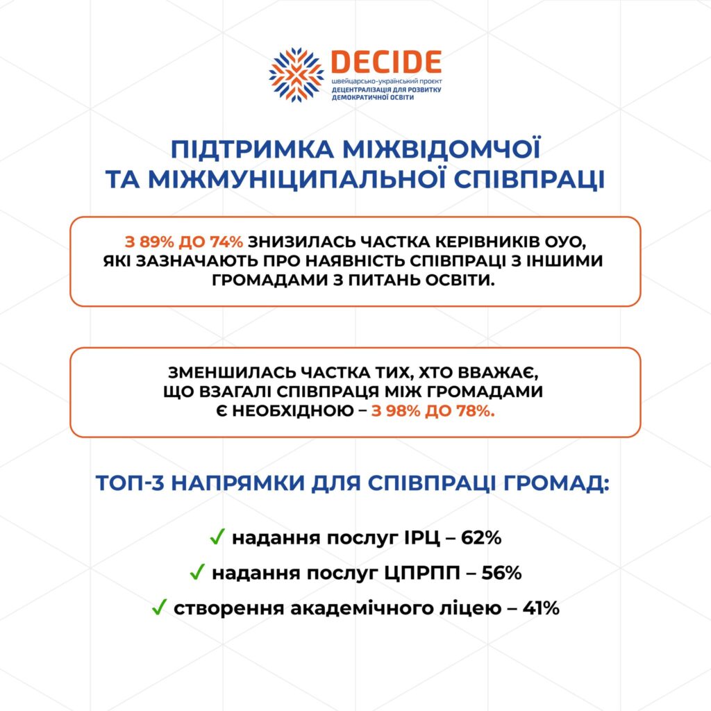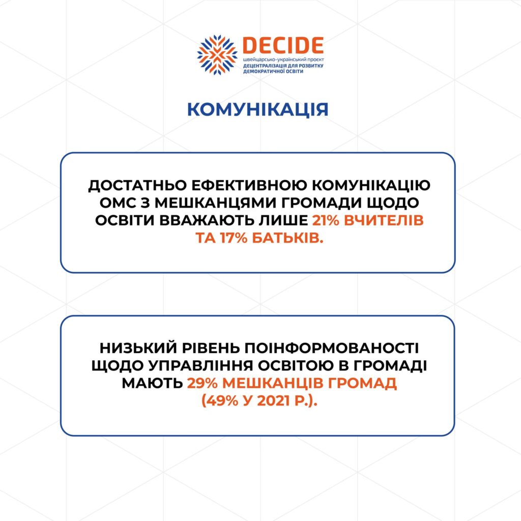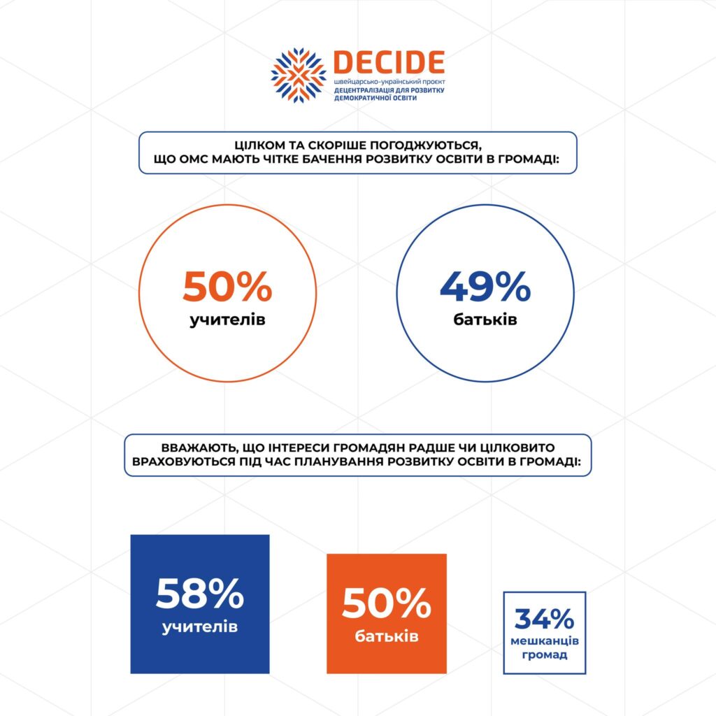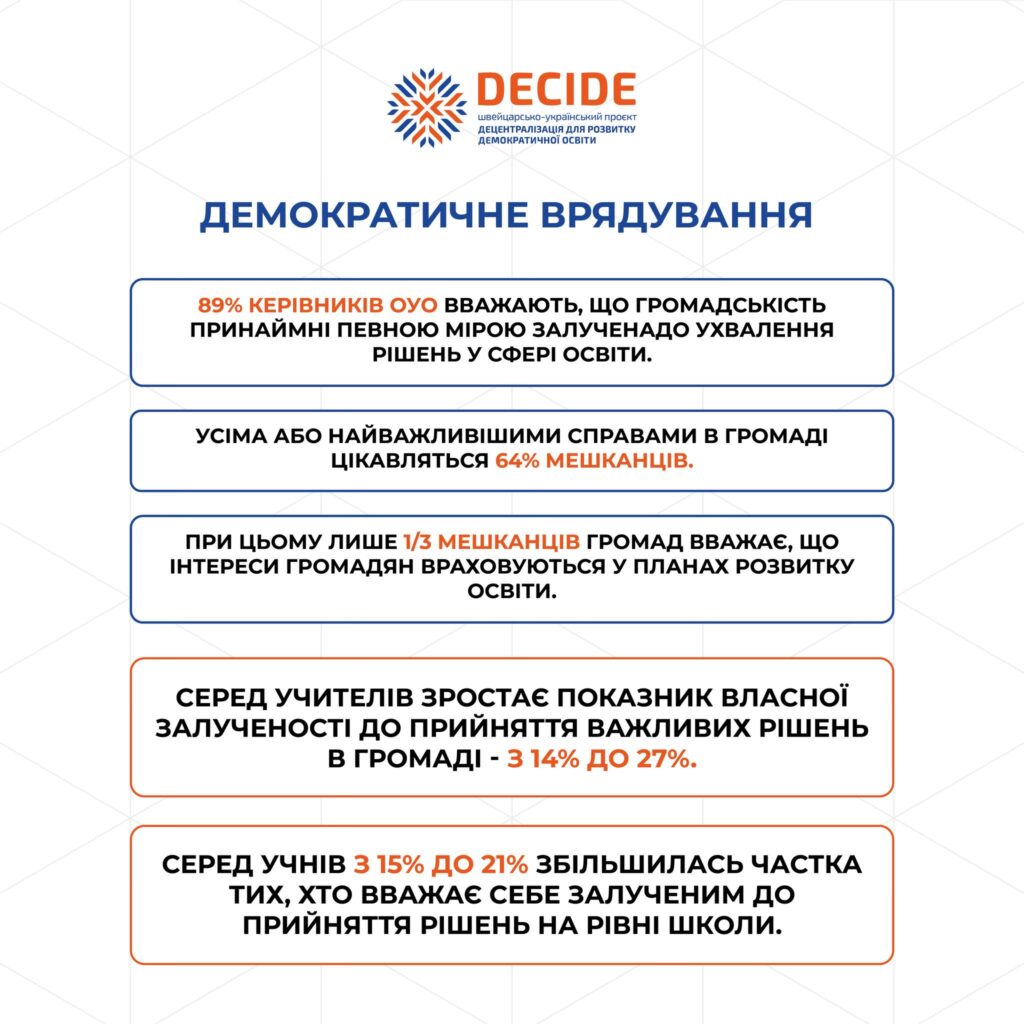 💡Проєкт DECIDE презентує результати другого всеукраїнського дослідження “Децентралізація управління освітою в громадах». Перше ми проводили ще у 2021 році. Друге — вже під час повномасштабної війни.